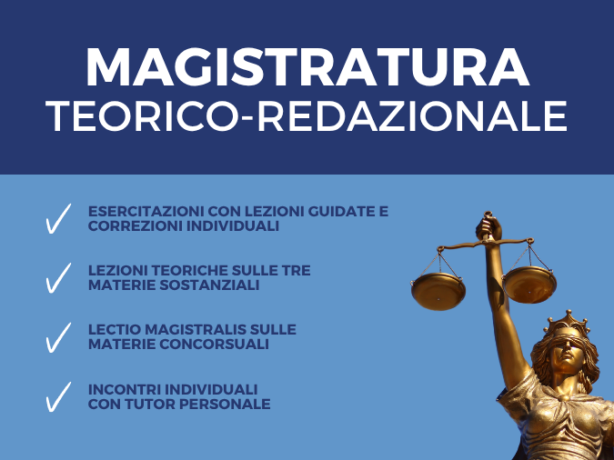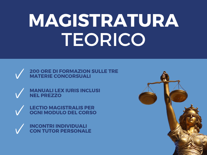 Il corso magistratura annuale teorico di Lex Iuris si distingue per essere un percorso interamente focalizzato sulla preparazione teorica, pensato per costruire in modo sistematico e approfondito le basi delle tre materie concorsuali.
