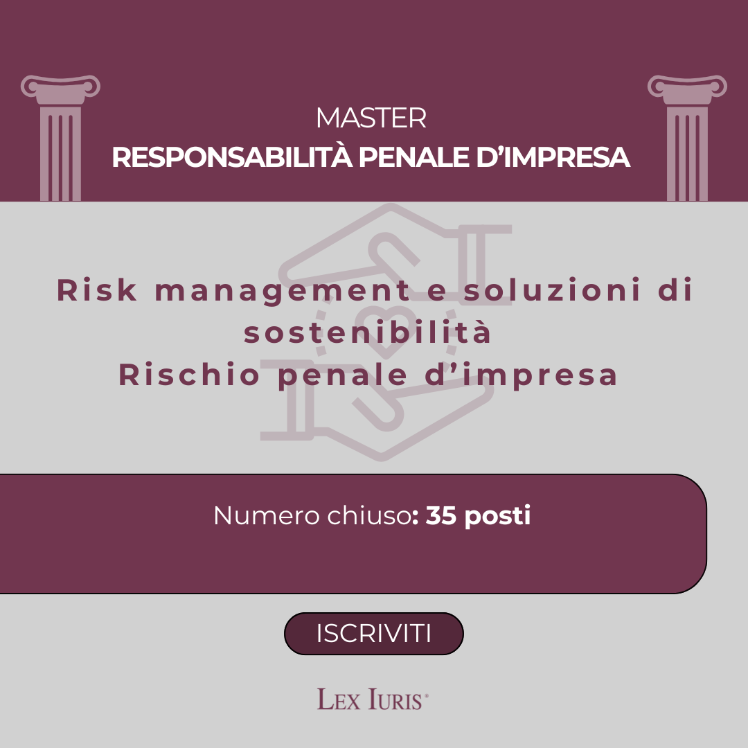 MASTER DIRITTO PROCESSUALE CIVILE E DIRITTO DELL'ARBITRATO SCOPRI DI PIU’→ MASTER DIRITTO PROCESSUALE PENALE SCOPRI DI PIU’ → MASTER LEGAL ENGLISH SCOPRI DI PIU’ → MASTER RESPONSABILITÀ PENALE D'IMPRESA SCOPRI DI PIU’ → MASTER DIRITTO SPORTIVO SCOPRI DI PIU’ →