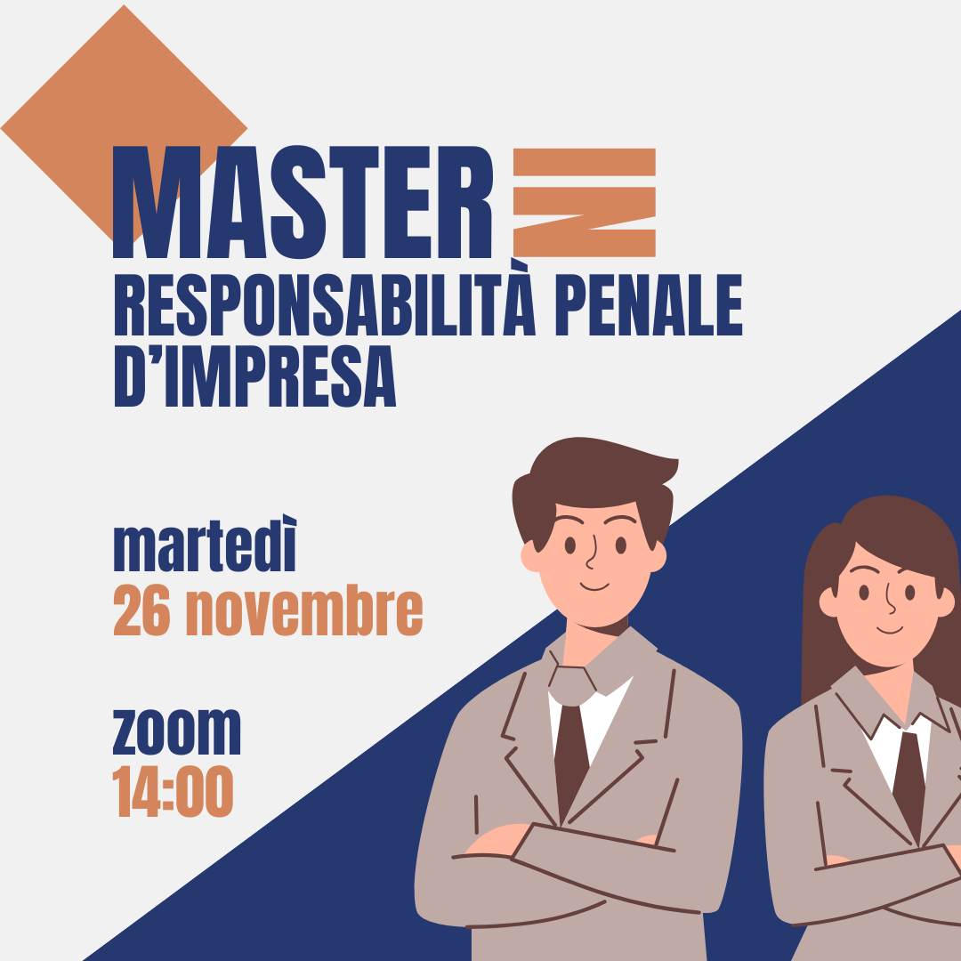 Il 26 novembre alle ore 14:00 si terrà la presentazione del Master Responsabilità Penale di Impresa.